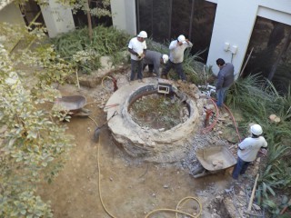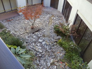 The two atrium areas with concrete and tile broken up by jackhammers.