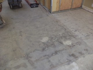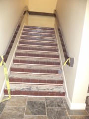 The lobby floors after the slate has been removed, ready for polishing and sealing.